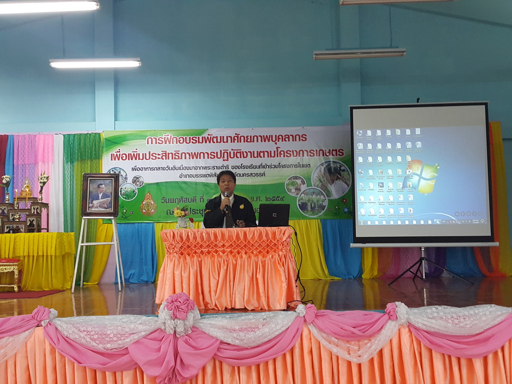 การอบรมพัฒนาศักยภาพบุคลากรเพื่อเพิ่มประสิทธิภาพการปฏิบัติงานตามโครงการเกษตรเพื่ออาหารกลางวัน